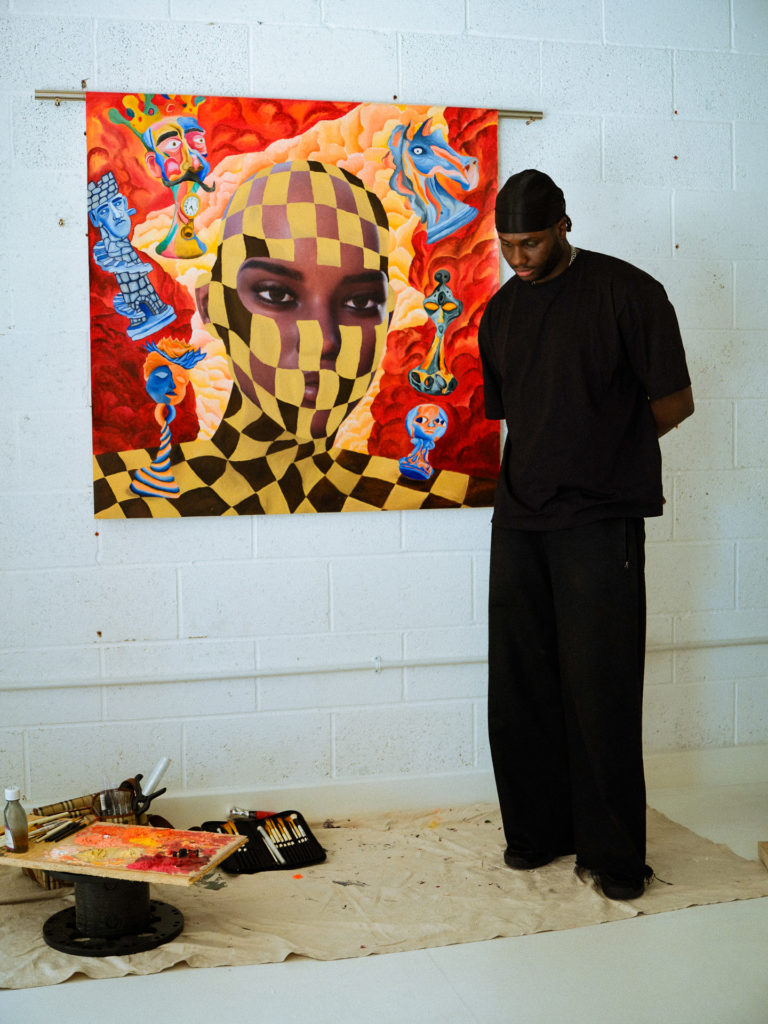 “It has evolved so much,” he says. “858 is the clothing brand, Studio 858 is the creative studio, Farouk 858 is me the artist, and then there is 858 Art Club.”