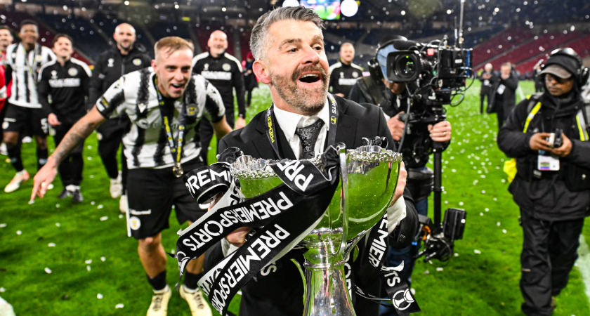 St Mirren manager Stephen Robinson celebrates his side’s Scottish League Cup victory (Image: Paul Devlin / SNS Group via Getty Images)